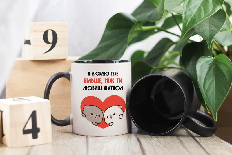 Коли горнятко "холодне" воно чорного кольору, принт не видно. При наливанні кип'ятку стає білим, з'єднання являється принт. Коли охолоджується ставати знову чорним. Матеріал кераміка, об'єм 330мл.