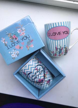 Чашка кружка з малюнком принтом з серцем сердечком написами надписом квітами в подарункові...