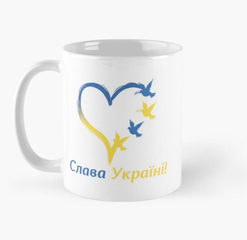Чашка керамічна кружка з принтом слава україні пташки біла 330 мл