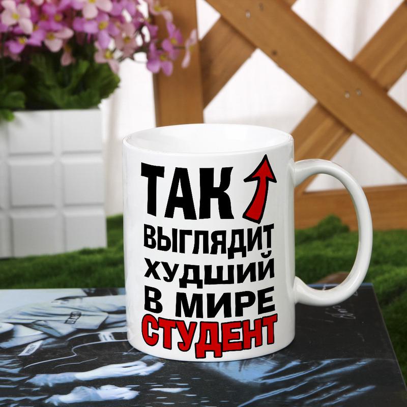 Чашка на подарунок для студента з написом "ось так виглядає найгірший студент у світі"