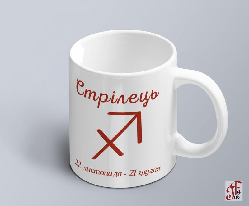 Чашка с принтом знак зодиака Стрелець. З датою.