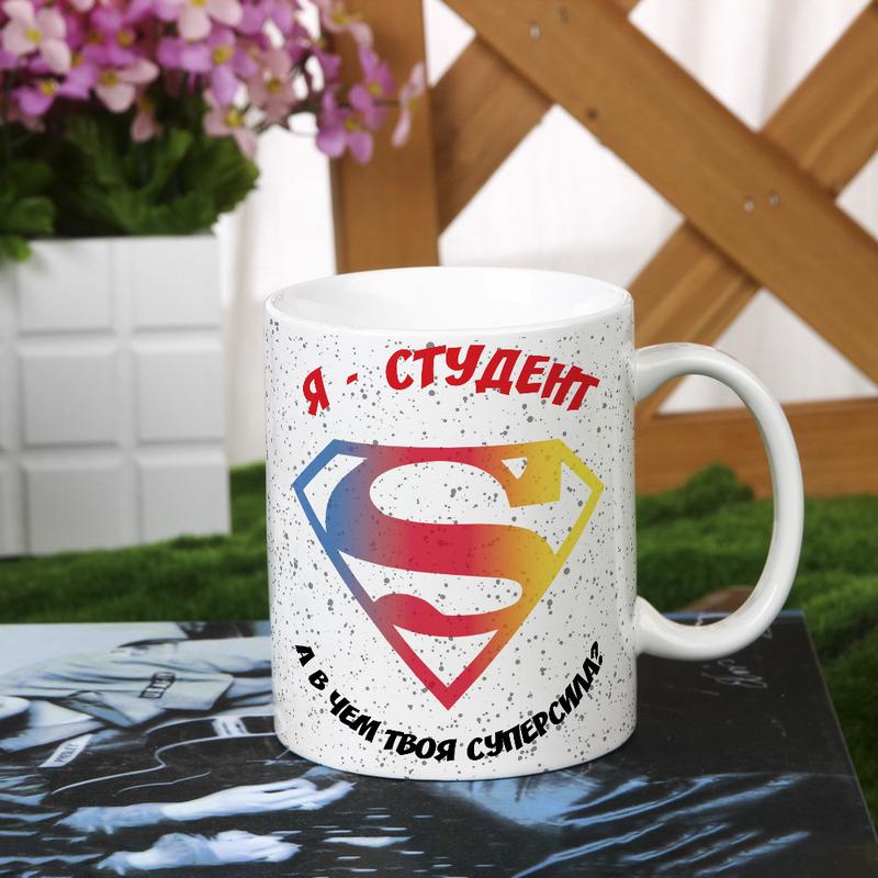 Чашка для студента з написом "я - студент, а яка у тебе суперсила"