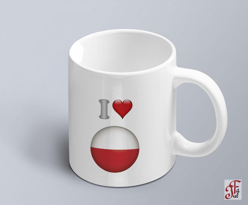 Чашка з принтом я Люблю Польщу з зображенням прапору