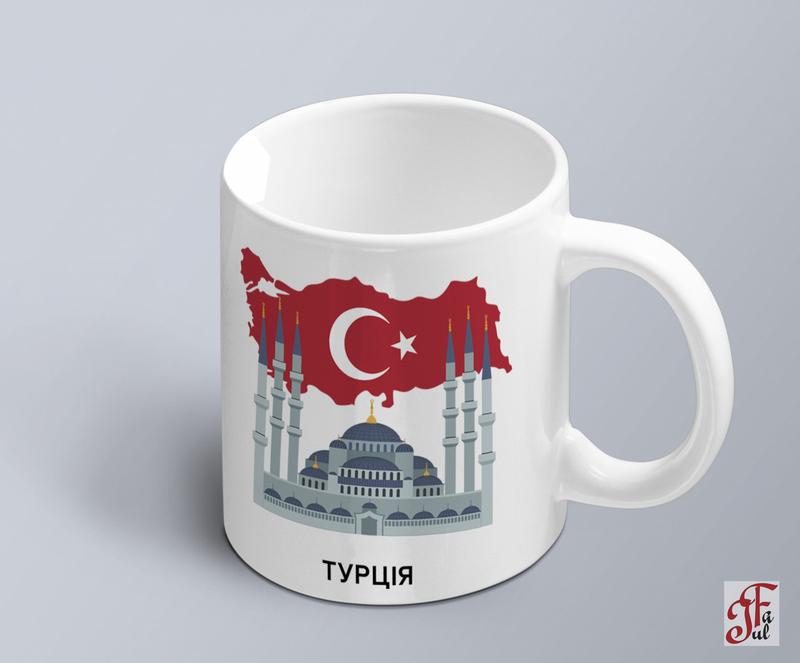 Чашка з графічним принтом пам'ятного місця Турція. Стане чудовим засобом для візуалізації свого бажання відвідати цю чудову країну та приємним подарунком для людей, які закохані в неї.