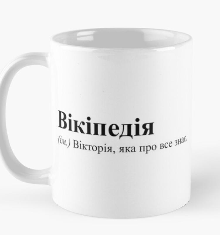 Чашка керамічна кружка з принтом вікіпедія вікторія віка біла 330 мл