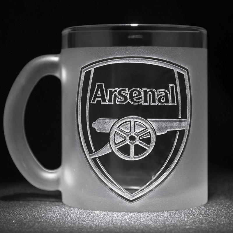 Стеклянная чашка для чая и кофе с гравировкой логотипа футбольного клуба Арсенал Arsenal FC Подарок для настоящего болельщика. Высококачественное нанесение рисунка: - механическая, пескоструйная гравировка стеклянной поверхности - объёмное, тактильно на ощупь - не смывается, выдержит любое количество стирок в посудомоечной машине и любыми средствами - экологично, при изготовлении не используются токсичные красители, краски и растворители. Сделайте для близкого человека, настоящего болельщика действительно уникальный подарок. По желанию, к декору можем добавить короткое пожелание, имя или любую другую надпись. Сделайте Ваш подарок уникальным для папы, сына и дедушки, для близкого Вам человека!