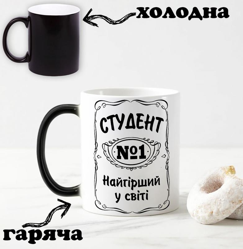 Чорна чашка хамелеон з написом "студент №1 найгірший у світі" 330 мл