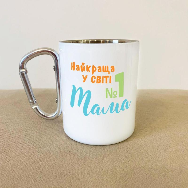Кружка металева з карабіном "найкраща у світі мама" 300 мл біла