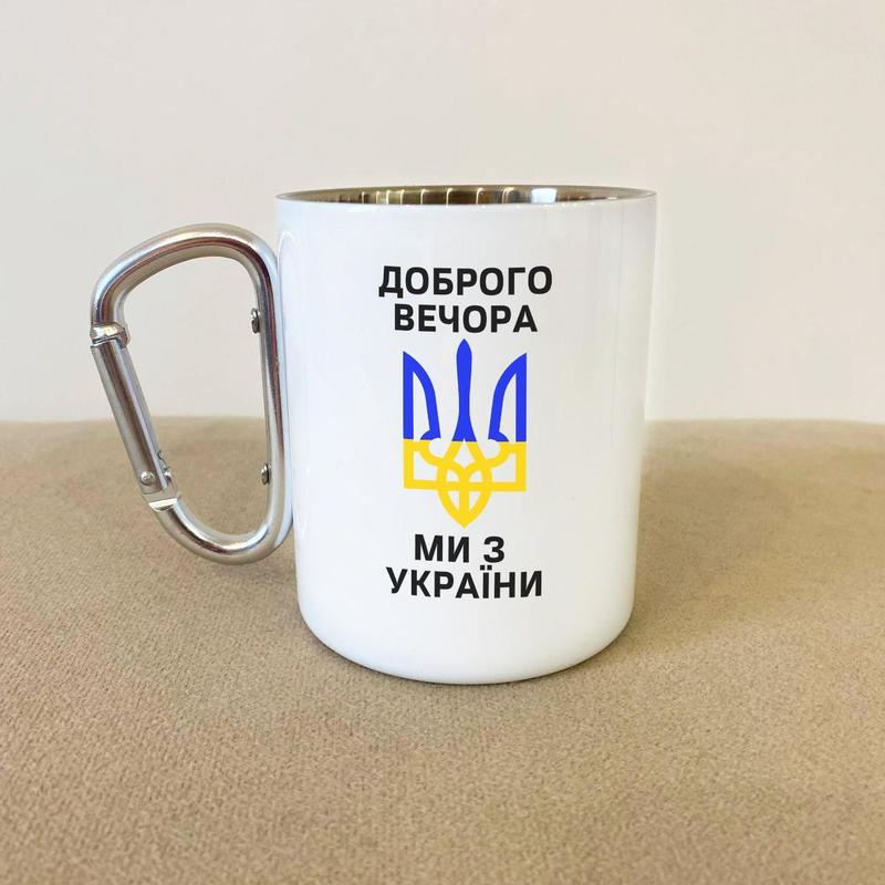 Кружка металева з карабіном "доброго вечора ми з україни" 300 мл біла