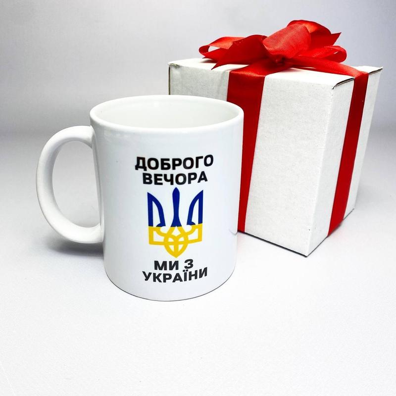 Кружка керамічна з патріотичним принтом "доброго вечора ми з україни" 330 мл у подарункові...