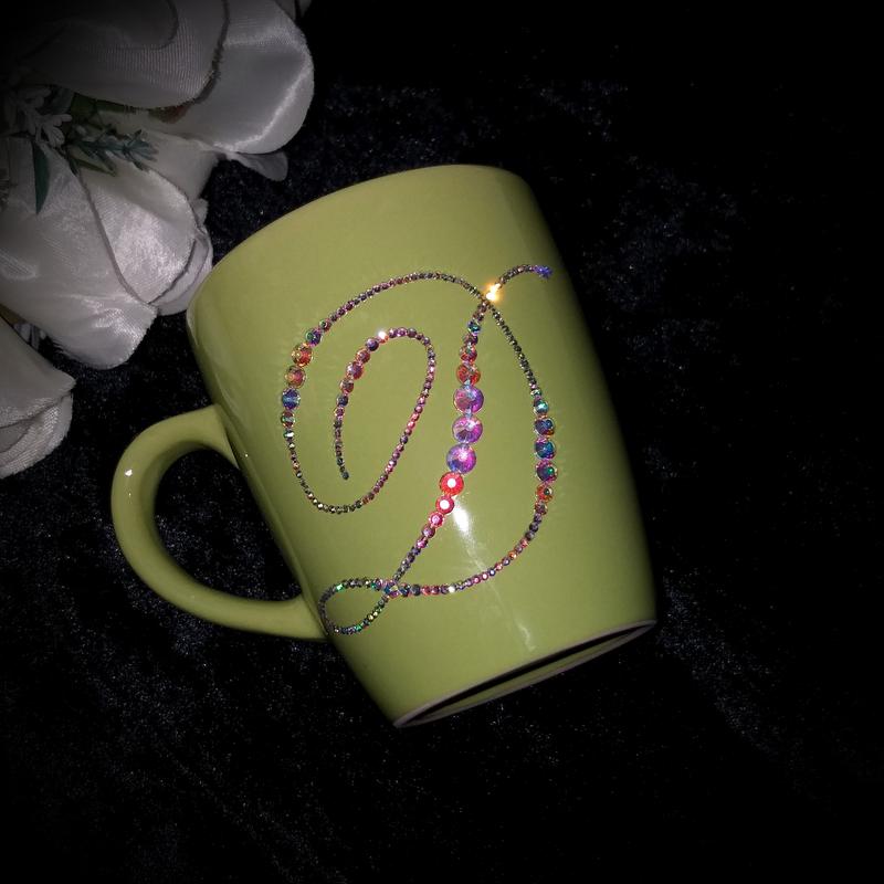 чашка з ініціалом у вигляді букви Д інкрустована стразами незвичайний подарунок до свят *чашка не декоративна, можна використовувати у побуті, мити як звичайний посуд і навіть посудомийка їй не страшна (але без фанатізму!) пакую як подарунок залишитесь задоволені