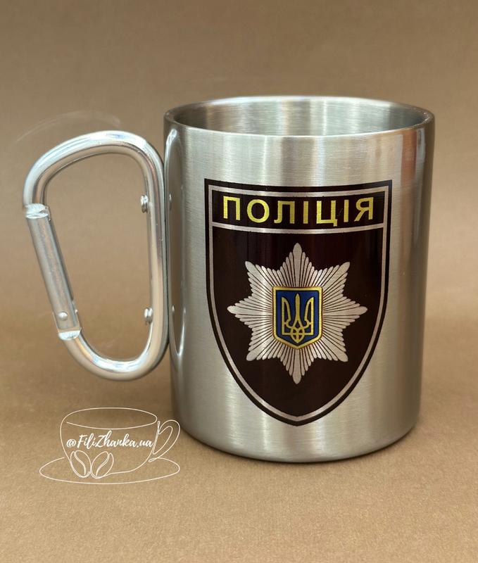 Металева чашка з ручкою-карабіном⛓️Виконана з нержавіючої сталі, має подвійні стальні стінки, за рахунок чого довше зберігає тепло🔥 💸Ціна: 380 грн (стандартне пакування) 💸Ціна: 405 грн (подарункове пакування🎁) Дизайн зробимо будь-який (емблема бригади, позивний, надпис, фото - вартість буде така сама) Відправка Новою Поштою/Укрпоштою Є оплата на рахунок ФОП, наложка по передоплаті або Безпечна Оплата на Шафа.Юа