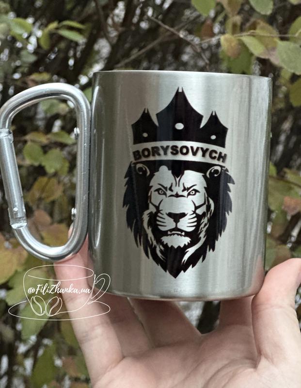 Металлическая чашка с карабином, чашка с фамилией, чашка с индивидуальным дизайном