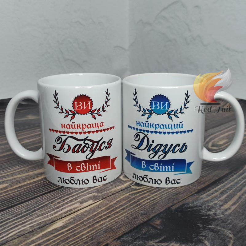 Чашки подарункові для бабусі і дідуся "ви найкраща бабуся/ ви найкращий дідусь" 330 мл