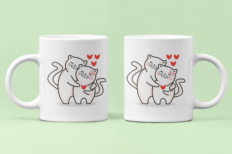 Парні чашки кружки парочка кошенят для закоханих білі 330 мл