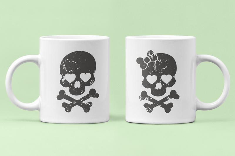 Парні чашки кружки череп він та вона для закоханих білі 330 мл