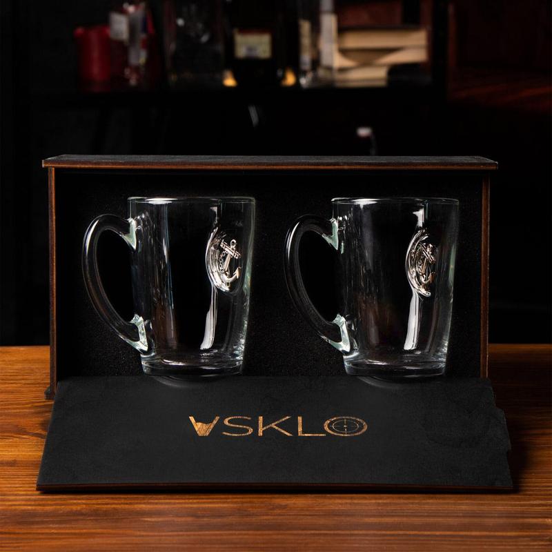 Чашка с якорем + деревянная коробка