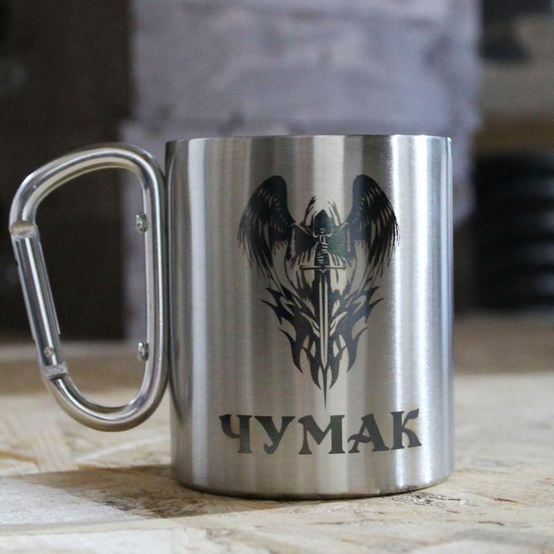 Металева чашка 250 мл з карабіном та гравіюванням - чумак