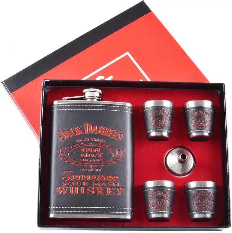Кілька примірників у наявності Подарунковий набір 6в1 "Jack Daniels" - - Фляга (Об'єм: 9 oz/ 256 мл) - - Чарки (Об'єм: 30 мл) - - Лійка Продається гуртом та в роздріб з доставкою по Україні Країна виробник: Китай Призначення фляги: Для алкогольних напоїв Форма: Прямокутна Стан: Новий Стопка: 4 шт. Воронка: Так