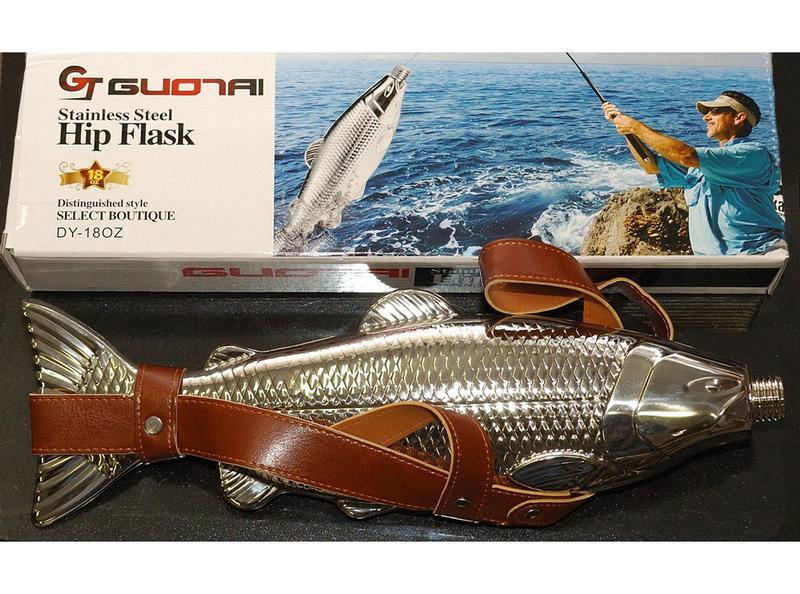 Кілька примірників у наявності Фляга сувенірна "Риба" 540мл в чохлі Продається гуртом та в роздріб з доставкою по Україні Країна виробник: Китай Матеріал: Нержавіюча сталь Об`єм: 0.54 л