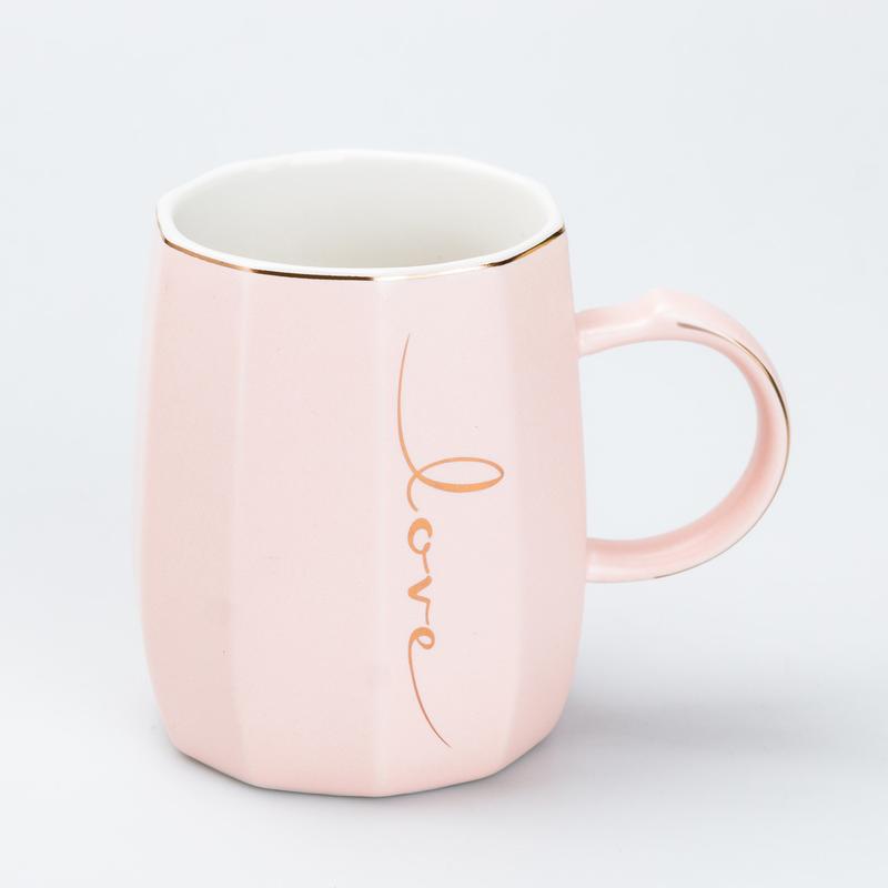 Чашка керамічна для чаю та кави 400 мл love рожева