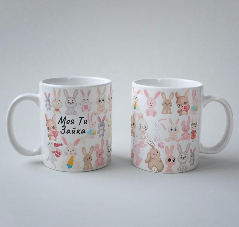 Незвичайний оригінальний подарунок кухоль керамічний з принтом "моя ти зайчик" 330 мл біли...