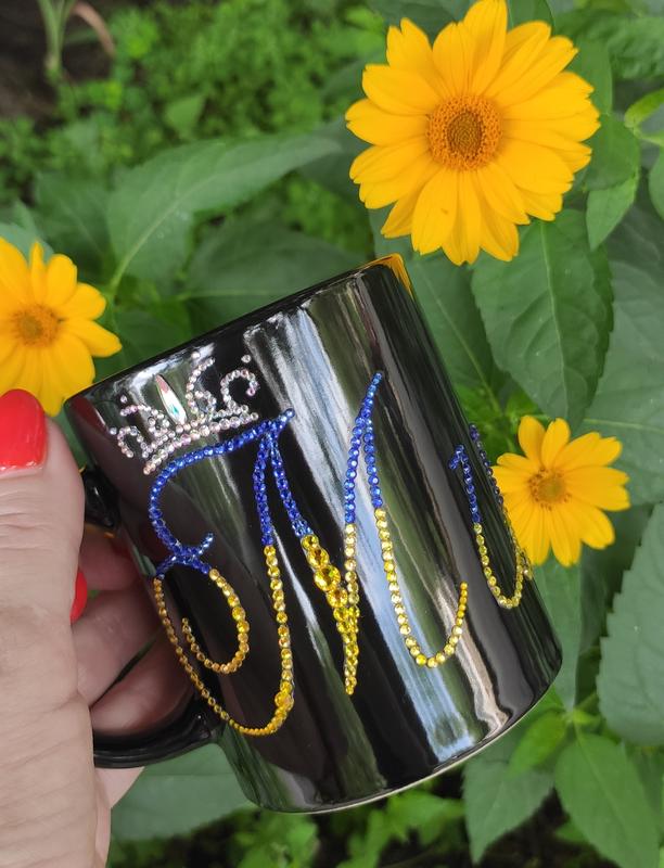 Чашка з інкрустацією стразами з повним ім'ям. Микола. Під замовлення. Можна всі імена. Вартість залежатиме від кількості літер чи складності малюнку. Термін виготовлення 3-5 днів.