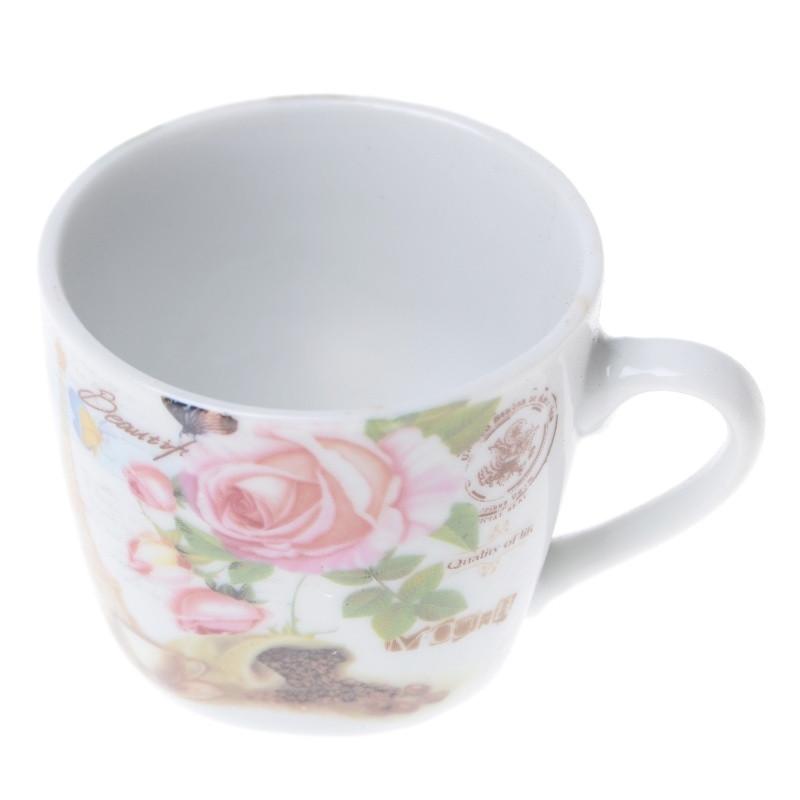 Набір складається з шести кавових чашок і шести блюдець. Він виготовлений з порцеляни – одного з найпопулярніших матеріалів для виробництва посуду. На чашках зображена Ейфелева вежа і прекрасна троянда. На блюдці розсипається ароматна каву, а ви насолоджуєтеся неповторним смаком цього напою. Набір кавових чашок створює затишок і прикрашає вашу кухню. Він підійде для теплих вечорів у колі близьких людей. Такий набір буде чудовим подарунком для поціновувачів кави, краси і, звичайно ж, романтичного Парижу. У набір входить: 1.Чашка, об'єм – 90 мл, 6 шт. 2. Блюдце, діаметр – 11 см, 6 шт.