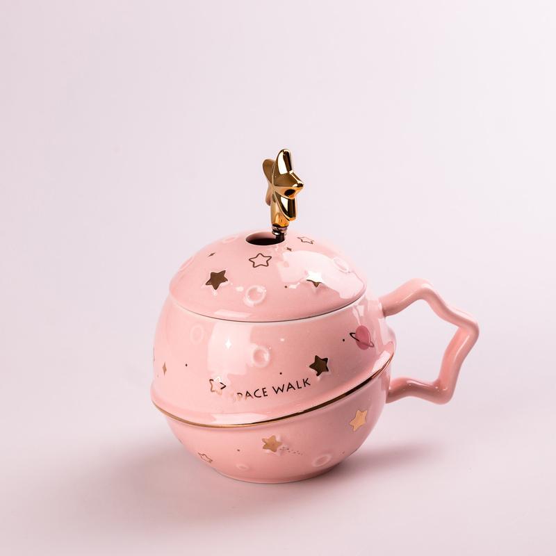 Чашка керамічна space walk 500мл із кришкою та ложкою чашка з кришкою чашки для кави