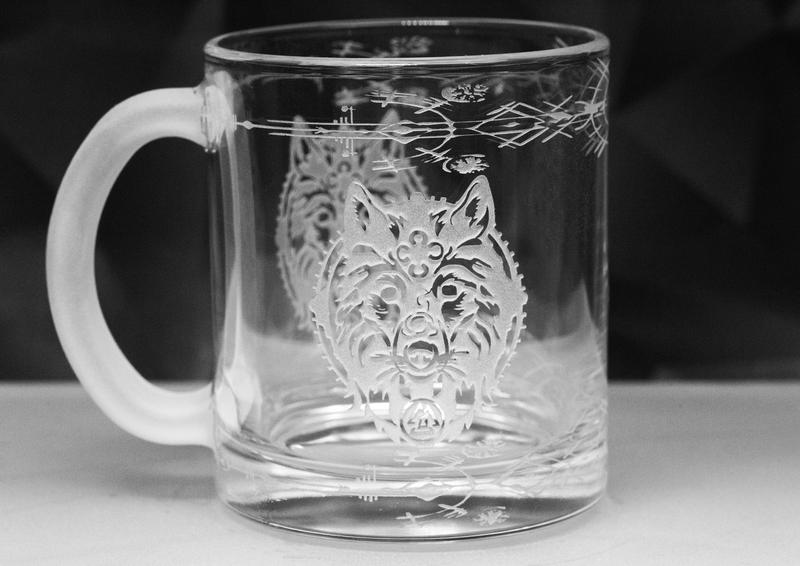 Скляна чашка з гравіюванням «Рунний вовк» - ідеальний вибір для любителів символіки та етнічних мотивів. Зображення голови вовка виконано в унікальному рунічному стилі з детальним опрацюванням, що надає виробу особливої атмосфери загадковості та сили. Гравірування якісне і довговічне, а сам вовк оточений стародавніми символами, що робить чашку чудовим подарунком для поціновувачів культури і міфології. Цей предмет стане не тільки зручним аксесуаром для напоїв, а й стильним доповненням інтер'єру.