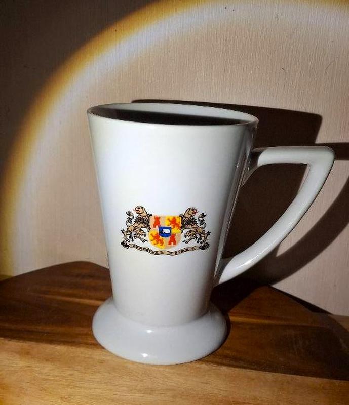 Елегантна модель для ранкової кави у гарну кухню. Якісна кераміка з принтом - гербом. Зручна, стійка, зручна ручка. Отримаєте задоволення від споживання гарячого напою! привезена з Німеччини. Можна у власну домашню колекцію, або на подарунок. Висота 11,5 см, ємність 250 мл.