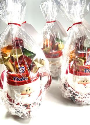 Новорічна чашка з солодким наповненням Матеріал чашки: кераміка Об’єм чашки: 550 мл Вага цукерок-110 грам