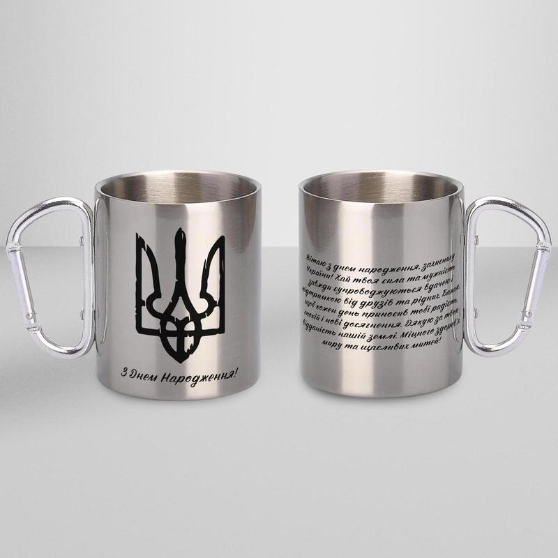 Кружка металева з карабіном "з днем народження зсу" 300 мл срібляста