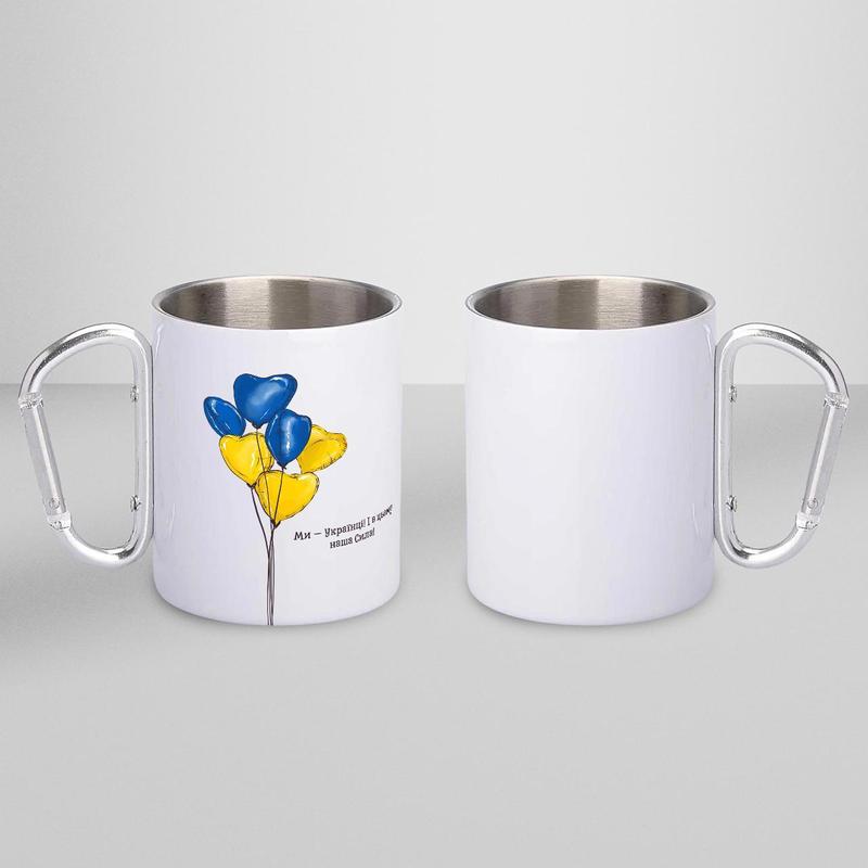 Кружка металева з карабіном "ми українці" 300 мл біла