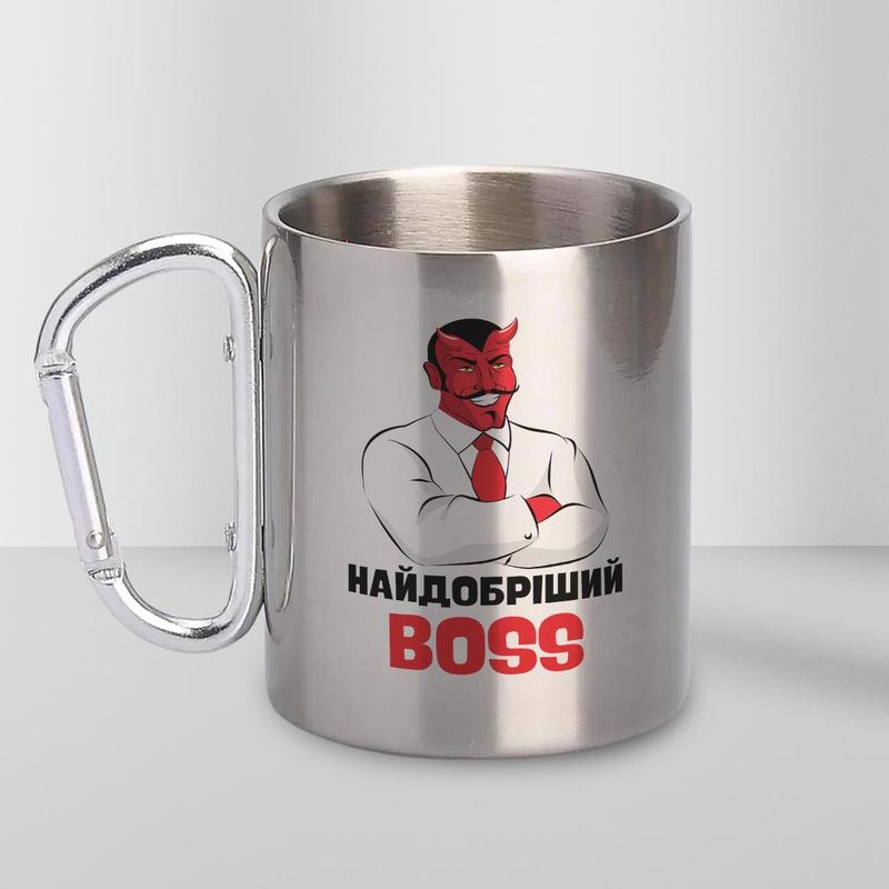Кружка металева з карабіном "найдобріший boss" 300 мл срібляста