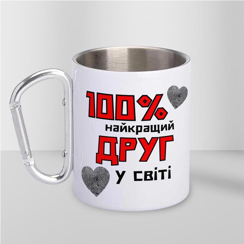 Кружка металева з карабіном "100% найкращий друг" 300 мл біла |швидка доставка|
