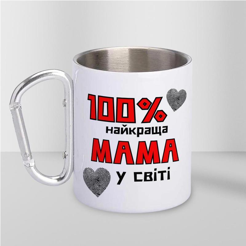 Кружка металева з карабіном "100% найкраща мама" 300 мл біла |швидка доставка|