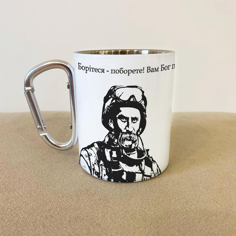 Кружка металева з карабіном "боріться шевченко т" 300 мл біла |швидка доставка|