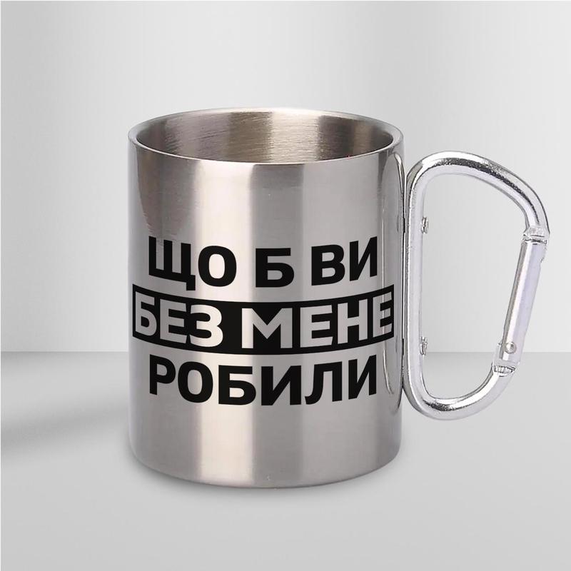 Кружка металева з карабіном "що б ви без мене робили" 300 мл срібляста |швидка доставка|
