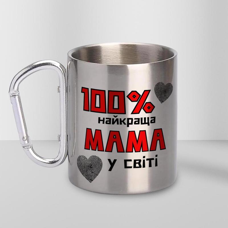 Кружка металева з карабіном "100% найкраща мама" 300 мл срібляста |швидка доставка|