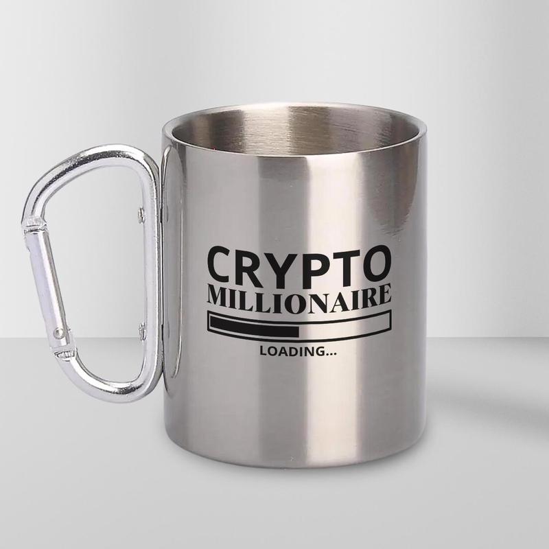 Кружка металева з карабіном "crypto millionaire" 300 мл срібляста |швидка доставка|