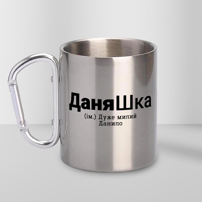 Кружка металева з карабіном "даняшка" 300 мл срібляста
