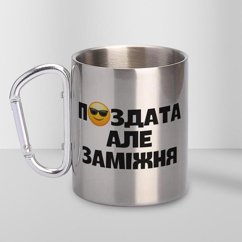 Кружка металева з карабіном "п#здата" 300 мл срібляста