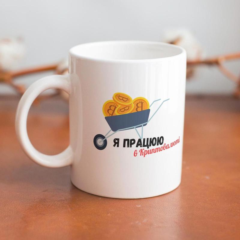 Кружка з принтом "я працюю в криптовалюті" 330 мл біла