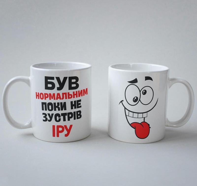 Кружка з принтом "був нормальним поки не зустрів іру" 330 мл біла