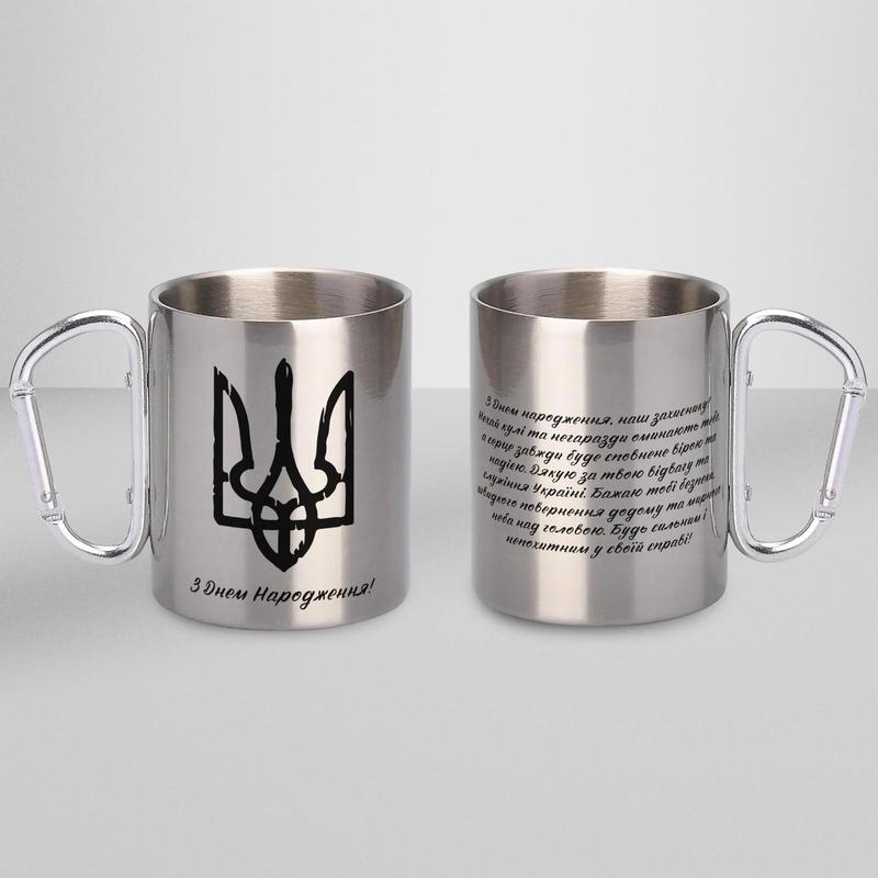 Кружка металева з карабіном "з днем народження зсу" 300 мл срібляста|швидка доставка|