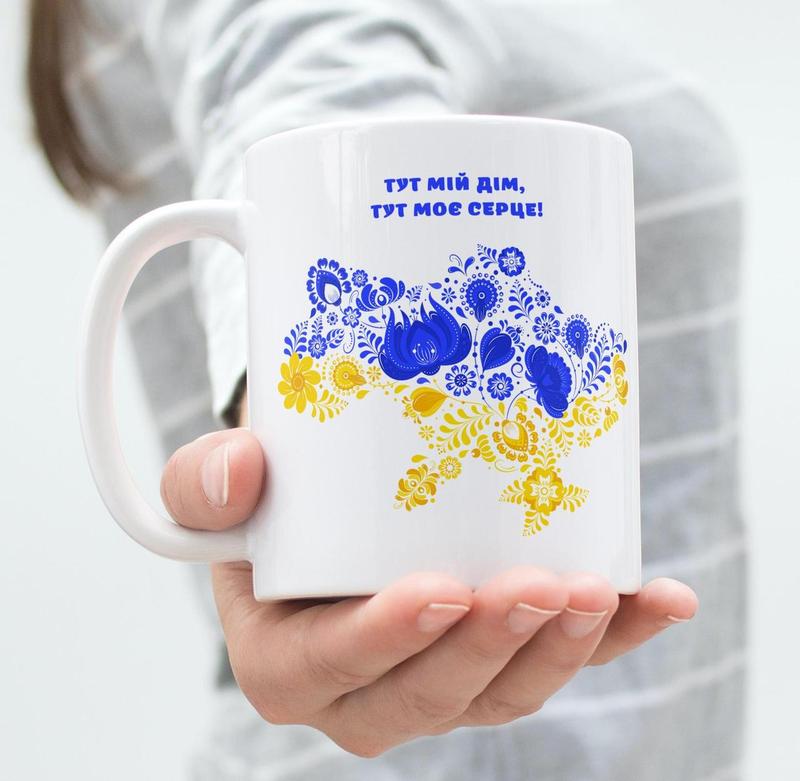 Кружка з патріотичним принтом "тут мій дім тут моє серце" 330 мл біла|швидка доставка|