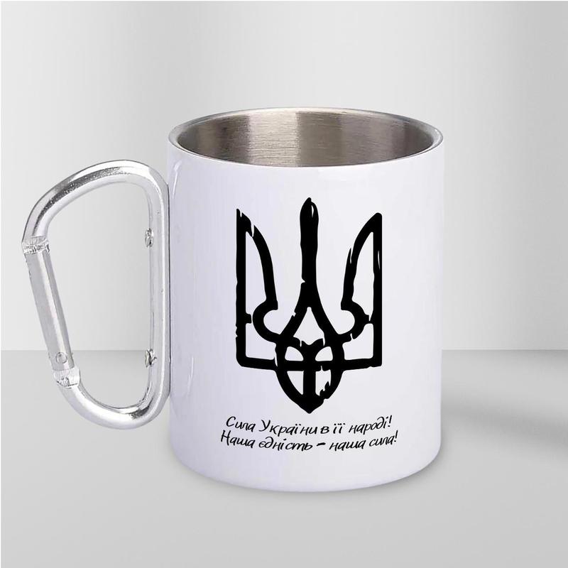 Кружка металева з карабіном "сила україни" 300 мл біла|швидка доставка|