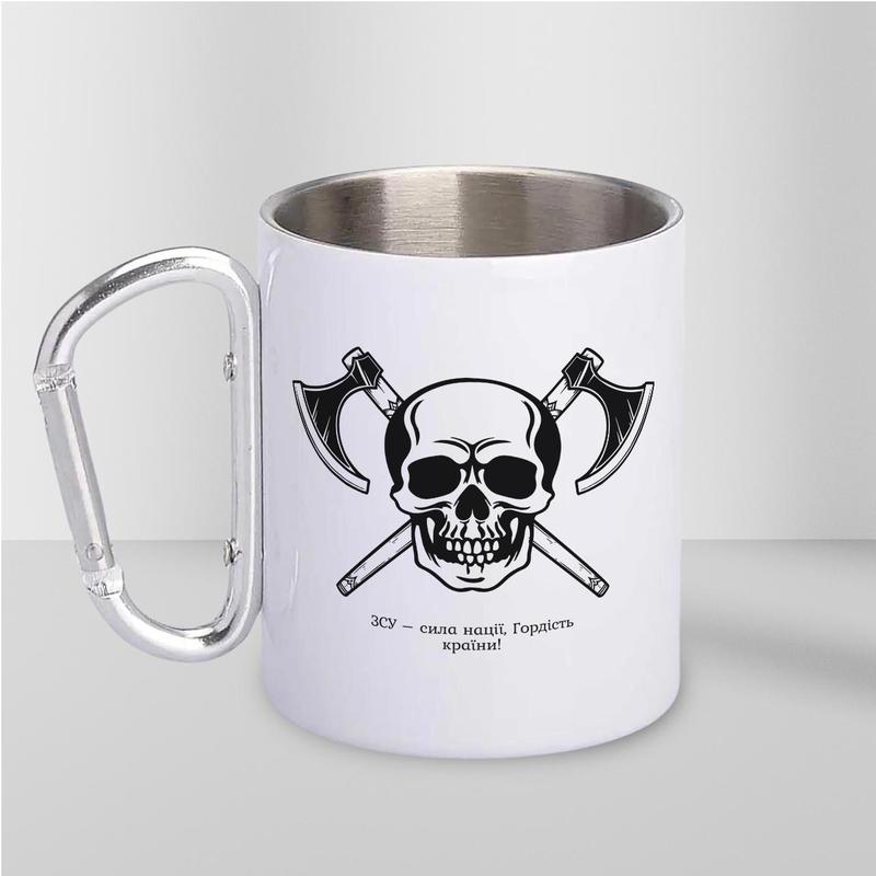 Кружка металева з карабіном "зсу сила нації" 300 мл біла|швидка доставка|
