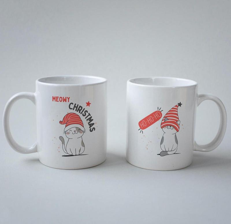 Кружка з принтом "meowy christmas" 330 мл біла|швидка доставка|